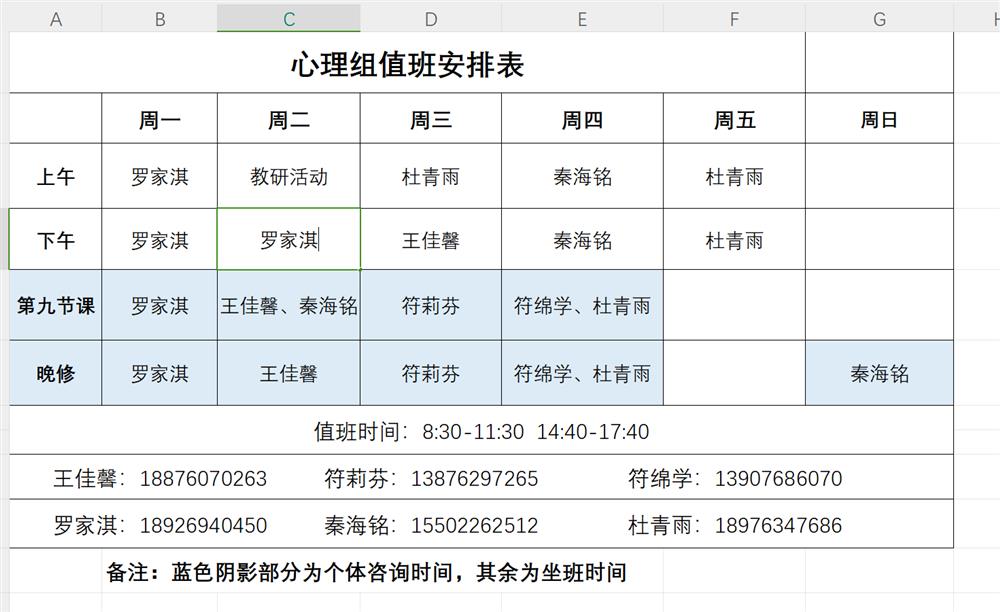 我们一起看看“心灵驿站”的值班表吧!