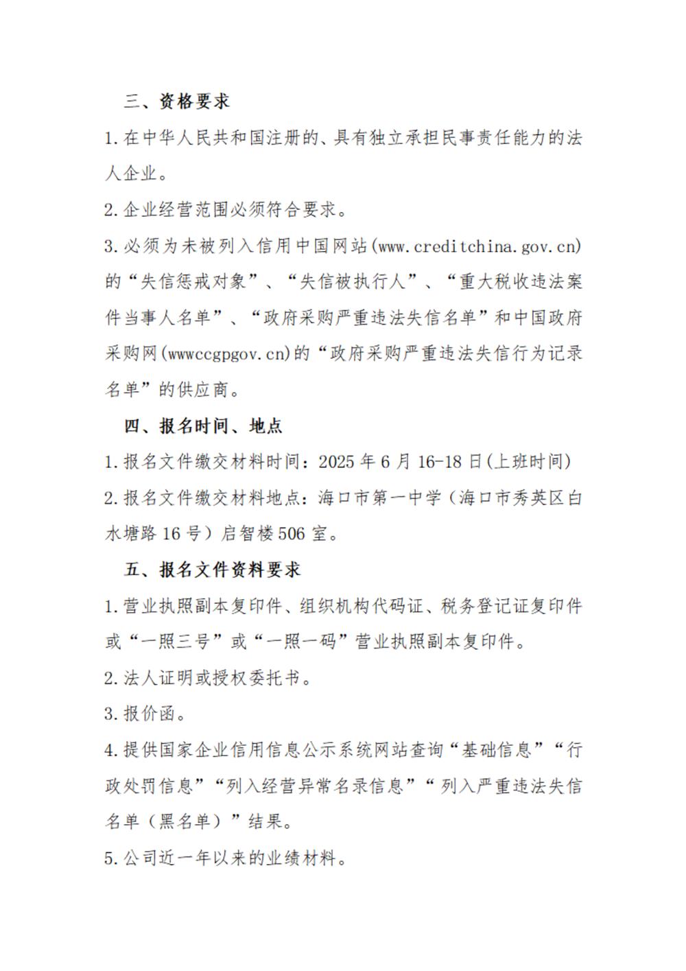 海口市第一中学关于《海口市第一中学2025年-2028年高中部第二食堂委托经营项目》招标代理机构遴选公告