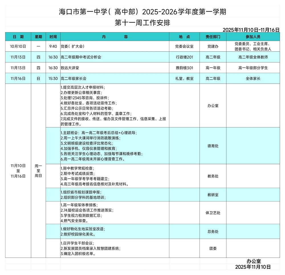 2025-2026学年度第一学期 第十一周工作安排表